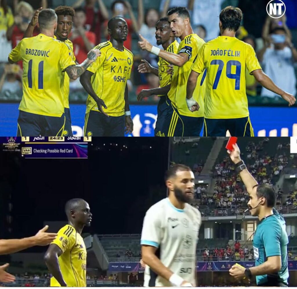 À la 25e minute, sur un geste mal maîtrisé sur le gardien saoudien Hamed Al-Shanqiti, Sadio Mané a été expulsé, laissant ses coéquipiers évoluer à dix. Malgré cette infériorité numérique, Al-Nassr a repris l’avantage à la 61e minute grâce à João Félix parfaitement servi par Cristiano Ronaldo.
