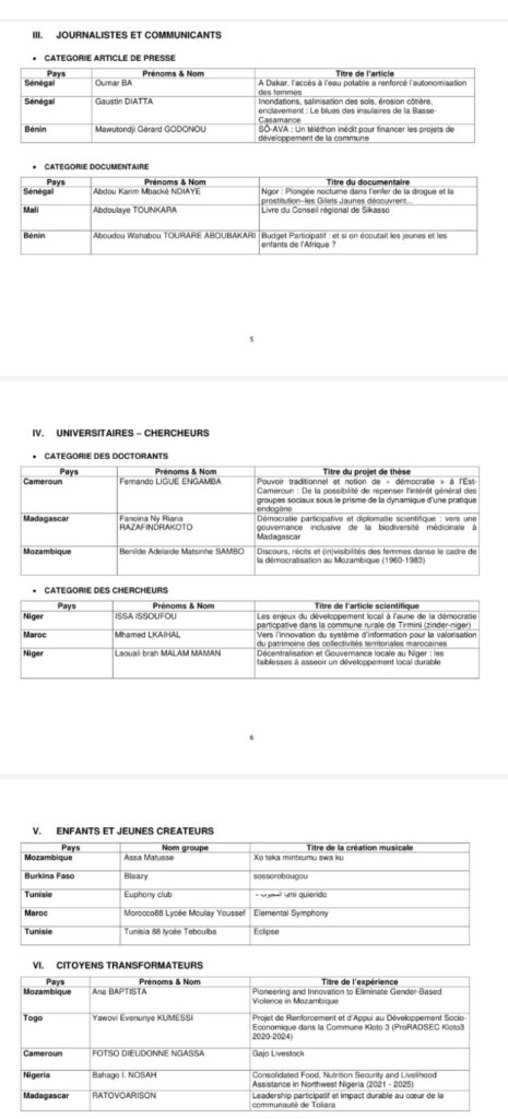 Dans le cadre de la promotion de la décentralisation, de la gouvernance locale et du développement local en Afrique, l’édition panafricaine 2025 du Prix d’excellence du leadership local (PELL) lancée, par l’Observatoire international de la démocratie participative en Afrique en partenariat avec l’Union africaine et Cités et Gouvernements locaux unis d’Afrique (CGLUA) a enregistré 734 dossiers provenant de 28 pays.