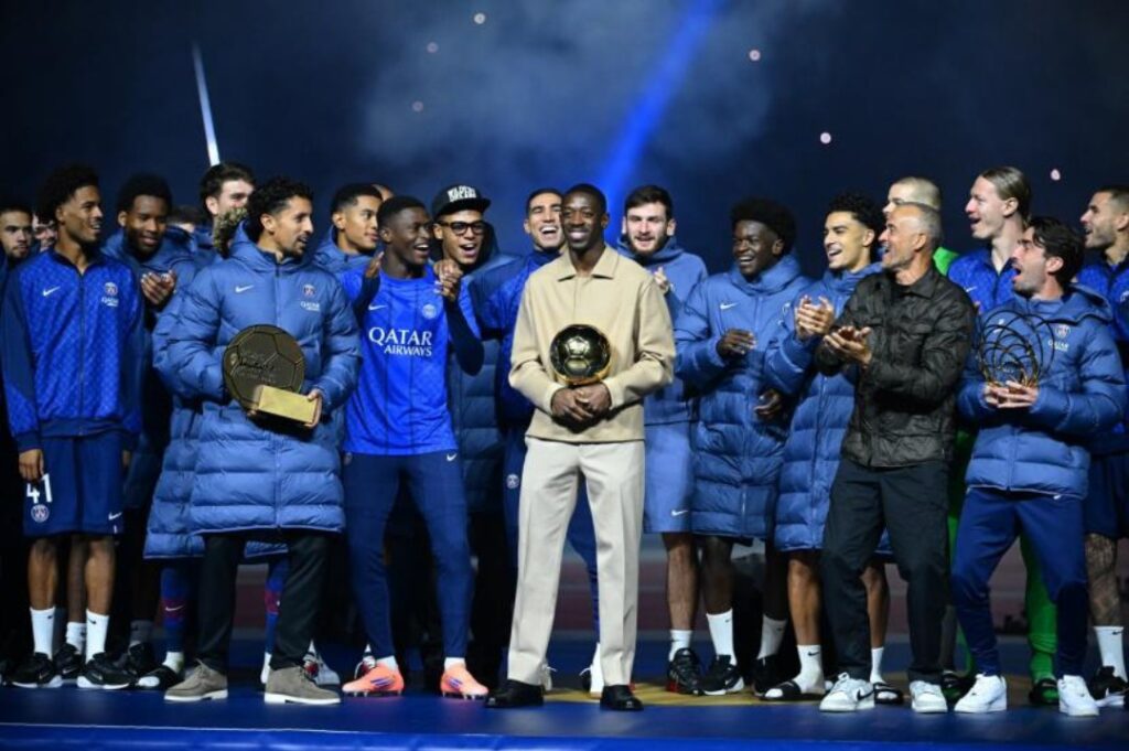 À l’issue de la victoire du PSG face à Auxerre (2-0) samedi soir en Ligue 1, une cérémonie a eu lieu pour rendre hommage à Ousmane Dembélé, vainqueur lundi du Ballon d’Or 2025, du club parisien, nommé club de l’année et de Luis Enrique, nommé entraîneur de l’année.