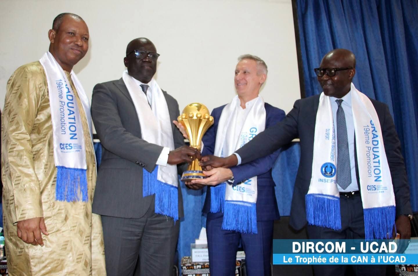 Exposé à l’Auditorium Khaly Amar Fall lors de la cérémonie de sortie de promotion INSEPS – FIFA/CIES, le trophée a suscité une ferveur exceptionnelle au sein de la communauté universitaire.